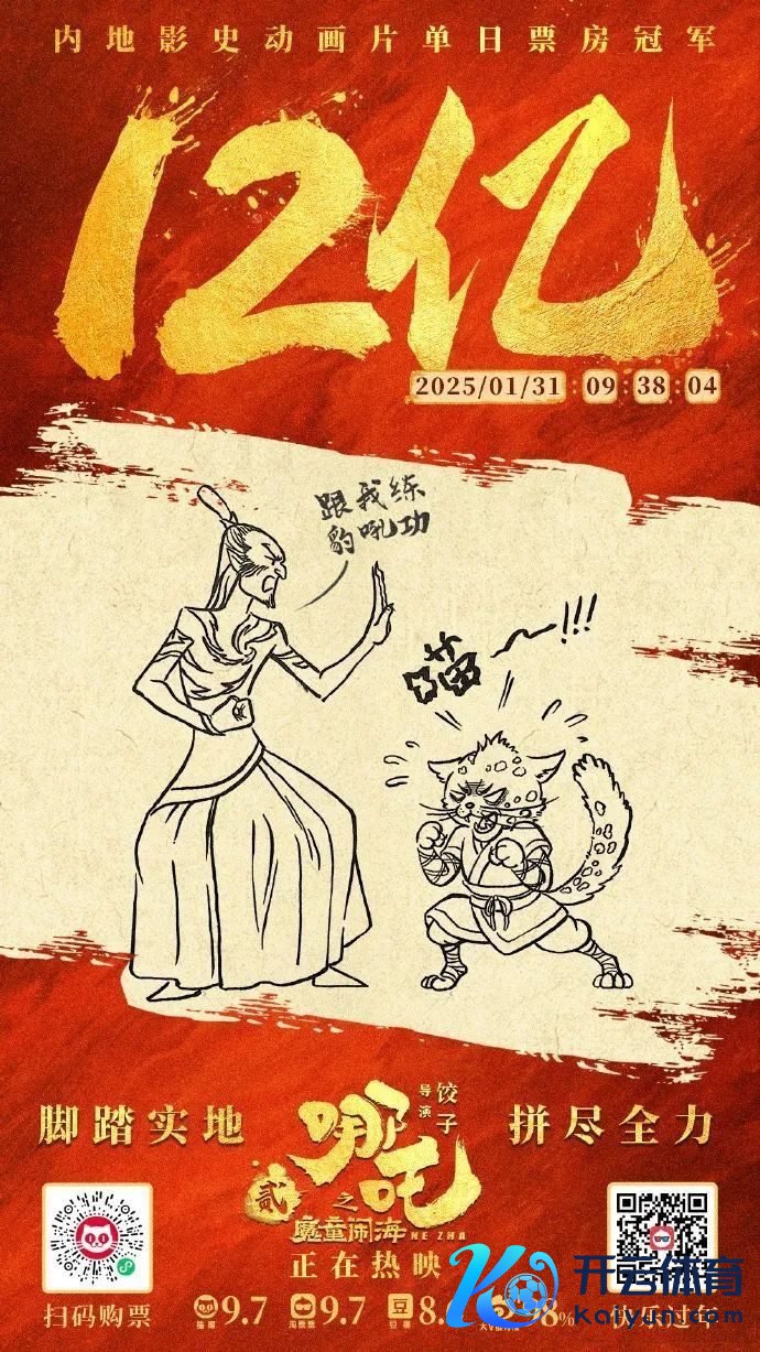 1月31日,@电影哪吒之魔童闹海发布海报祝愿上映第三天票房破12亿,豆瓣评分升至8.6,春节档断层第一。