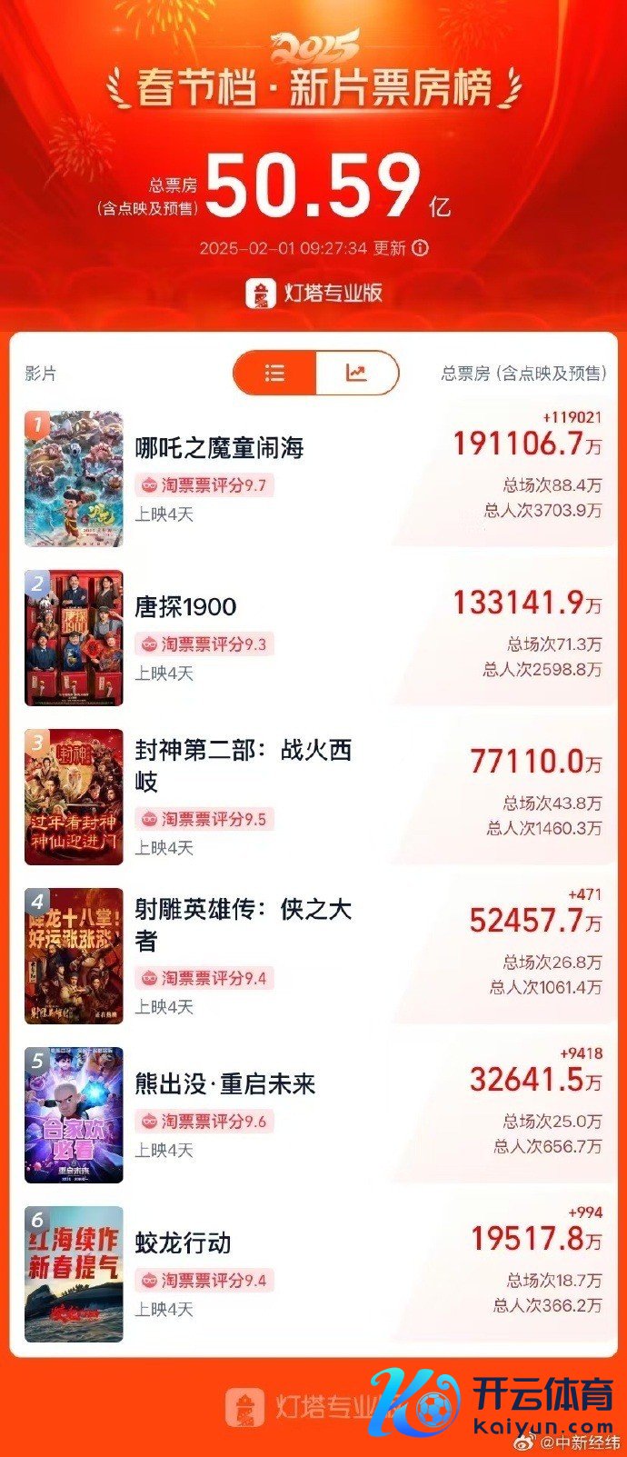 凭证灯塔专科版统计,2月1日,2025春节档总票房(含预售)破50亿!《哪吒之魔童闹海》《唐探1900》《封神第二部:战火西岐》暂时候列春节档票房前三。