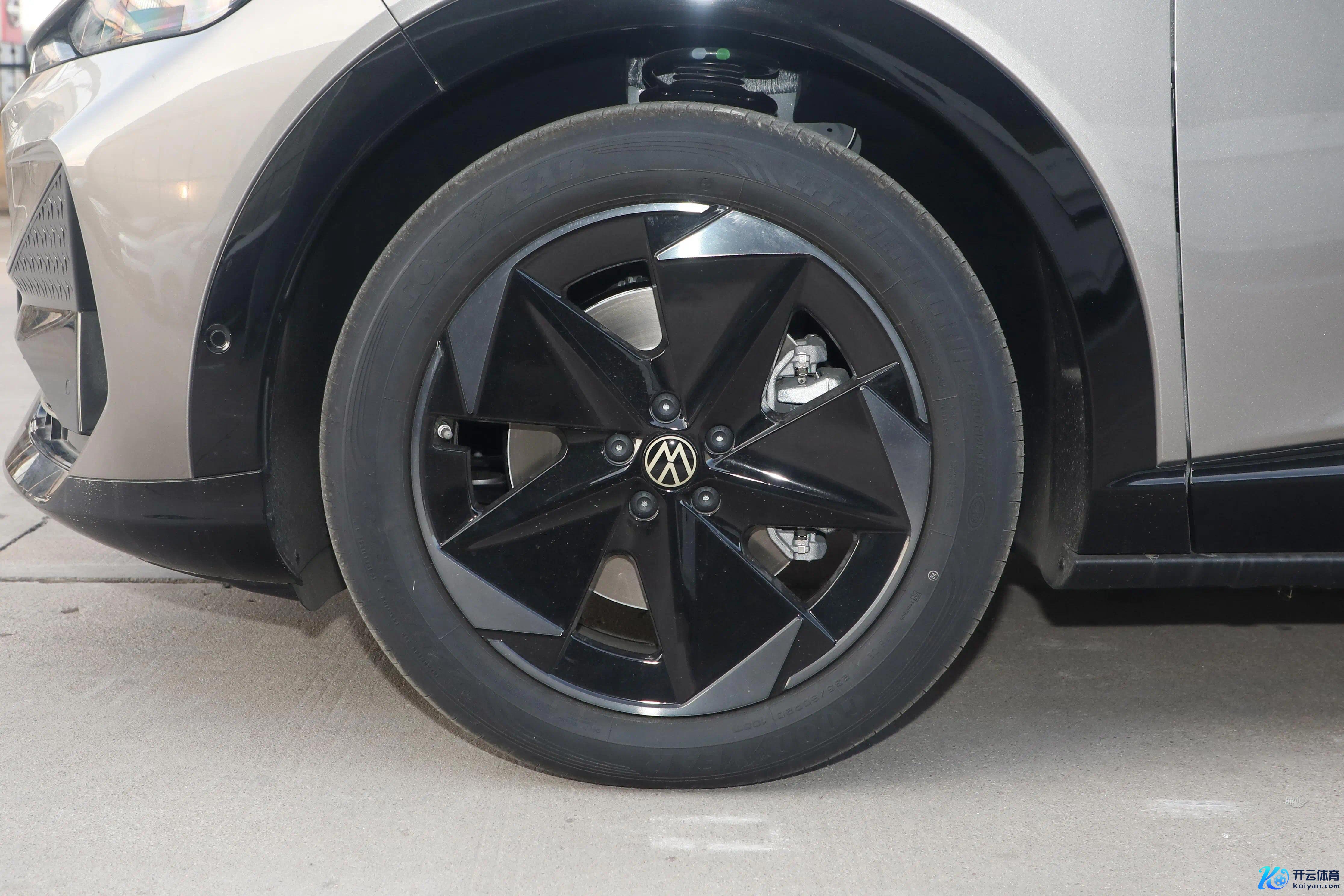 来到车身侧面,可以发现ID.与众继承了溜背的造型盘算推算,然而溜背空洞是从C柱运转的,并莫得对后排乘客的头部空间变成影响。前短悬和后长悬的盘算推算,再加上侧面双腰线的盘算推算,增多了一定的力量感。轮胎方面,咱们体验的这款车配备了235/50 R20规格的轮胎,“刀锋般”的轮毂具有可以的视觉恶果,50扁平比的轮胎也可以兼顾到行驶时的酣畅性。