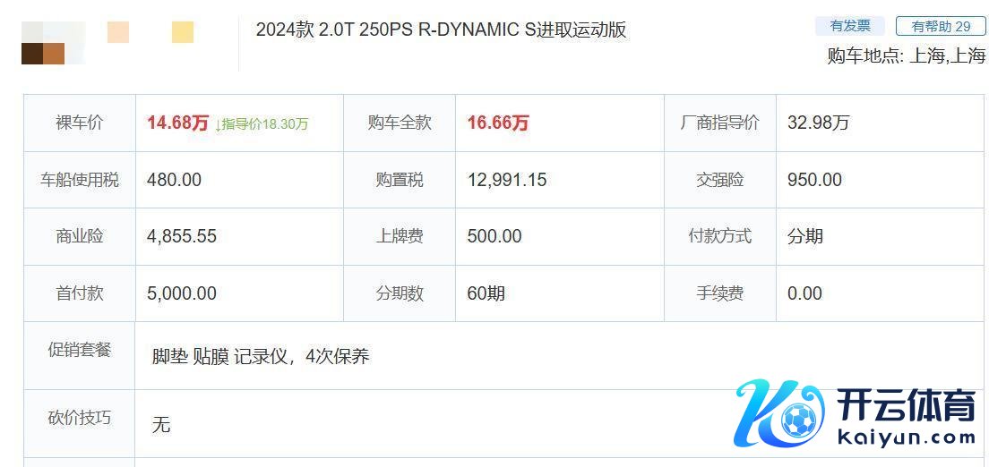 我又看了一下车主提车价钱,才发现网上阿谁出售捷豹XEL的价钱如故高了,证实上海车主提供的信息来看,售价32.98万元,优惠了18.30万元,价钱就酿成了14.68万元,落地价是16.66万元。