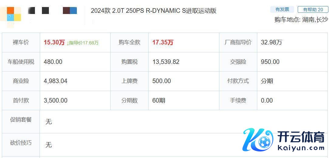 我又看了一下湖南长沙车主的提车价钱,这位车主优惠了17.68万元,现实价钱为15.30万元,17.35万元落地。