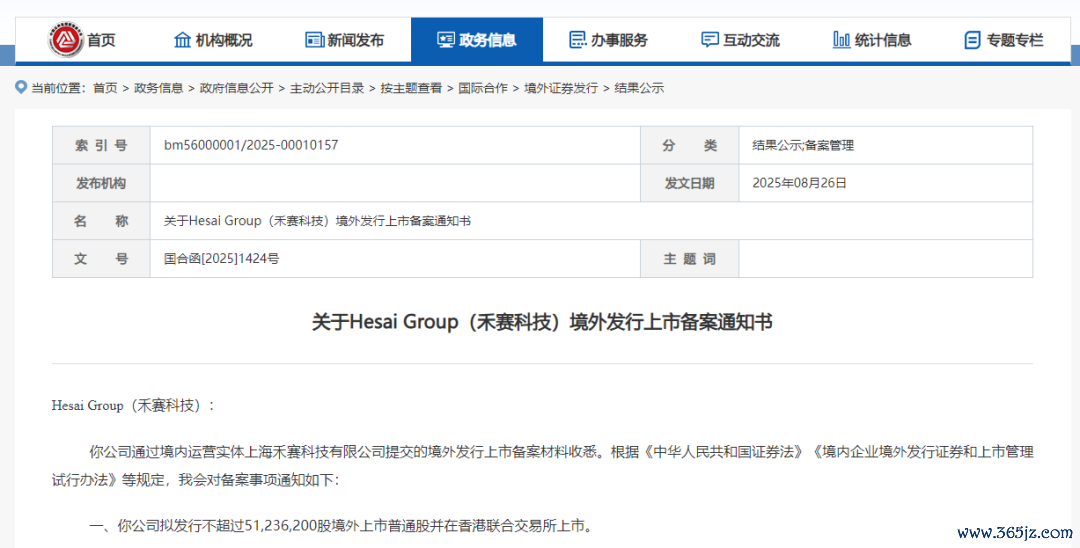 中国证监会海外配合司于8月26日袒露,其已于8月19日批准了对于Hesai Group(禾赛科技)境外刊行上市备案奉告书,禾赛科技可刊行不跳动51,236,200股境外上市鄙俚股并在香港勾通往来所上市。