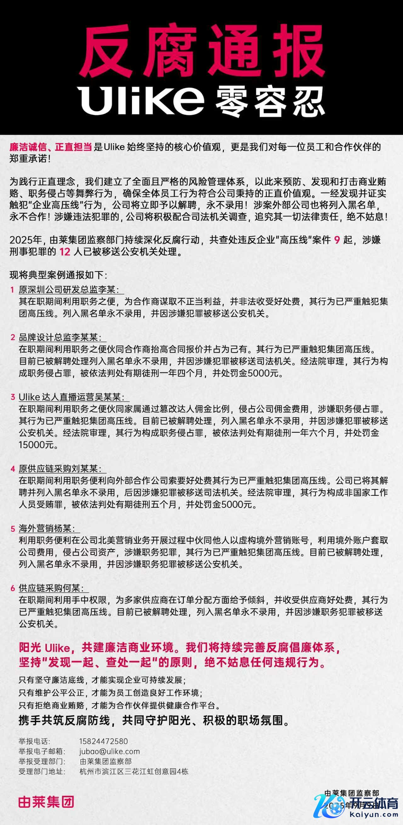 互联网行业反腐已成常态化趋势,从阿里缔造廉政合规部到腾讯试验“阳光腾讯”野心,从京东颁布《京东集团反让步条例》到字节朝上成就全员反腐机制,头部企业纷繁完善里面措置体系。Ulike这次公布反腐后果,恰是安妥这一溜业设施化发展趋势的紧迫举措。