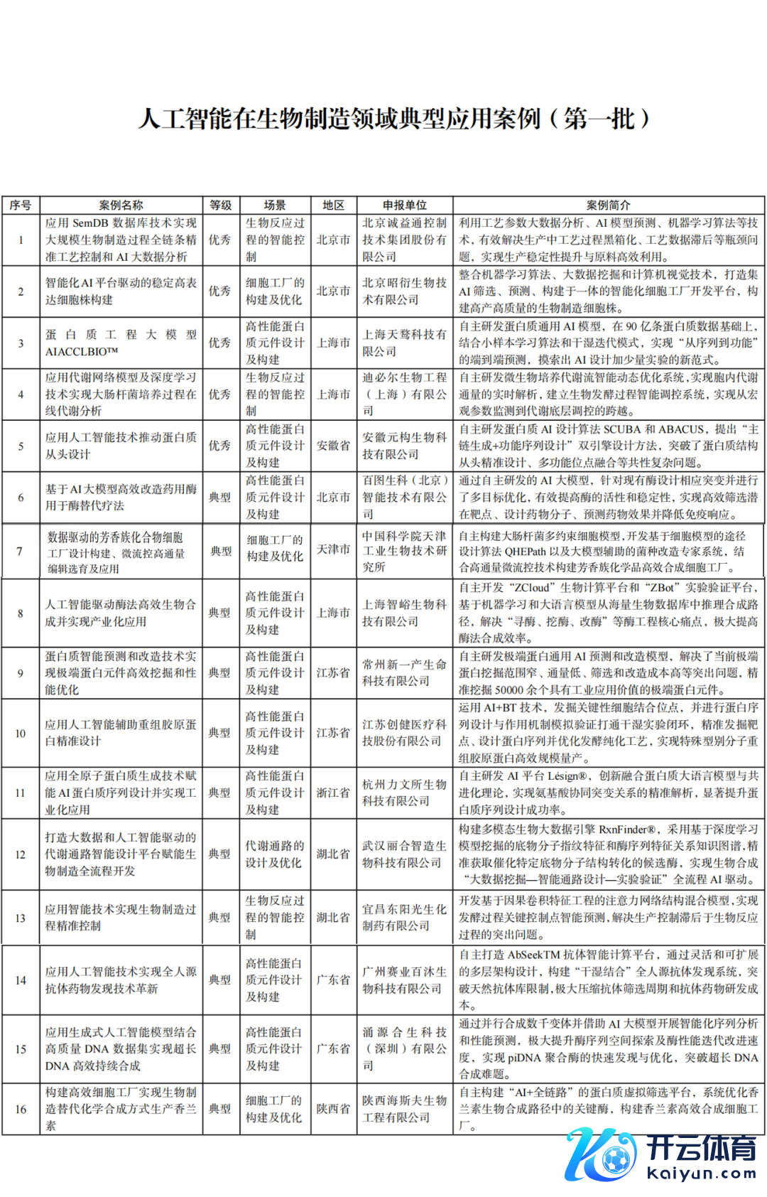 第一批东谈主工智能在生物制造边界典型愚弄案例公布第一批东谈主工智能在生物制造边界典型愚弄案例公布