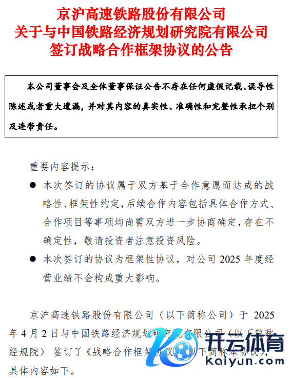 京沪高铁:与中国铁路经济盘算推算洽商院刚毅战术相助框架左券开云体育京沪高铁:与中国铁路经济盘算推算洽商院刚毅战术相助框架左券